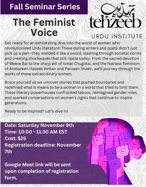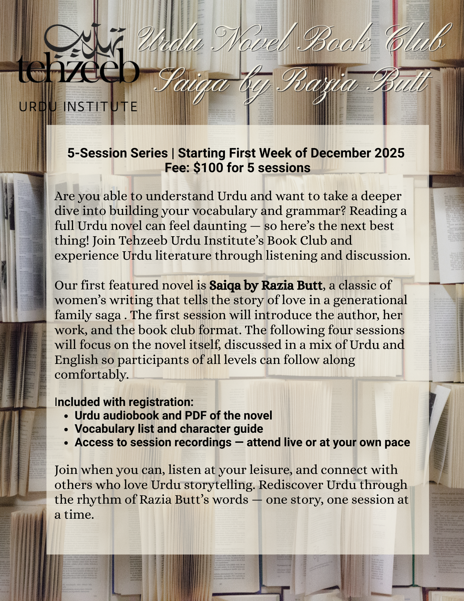Our seminars offer engaging, lecture-based discussions on a wide range of topics. These sessions are designed to deepen your understanding of the Urdu language and culture, providing insights into literature, history, and contemporary issues. Perfect for those who enjoy interactive learning and intellectual exploration.